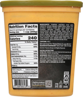 Panera Bread Autumn Squash Soup 32 Oz Soup Cup Gluten Free Publix Super Markets